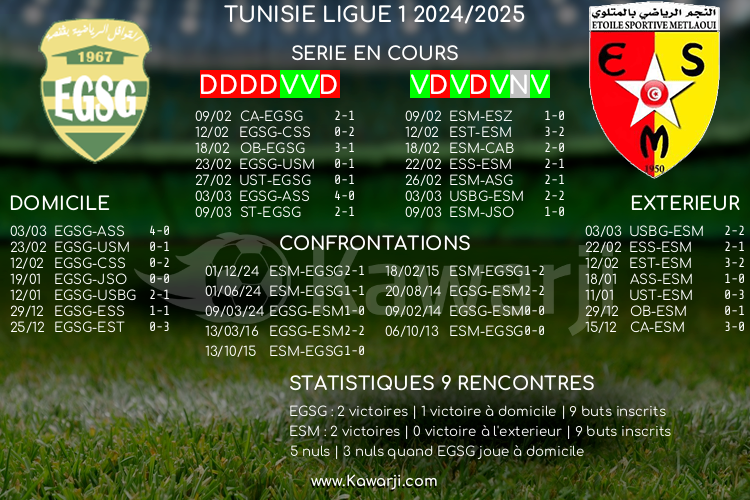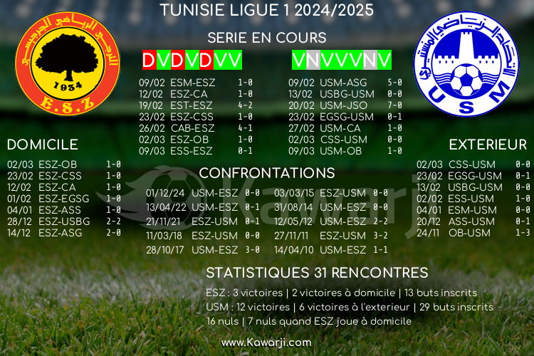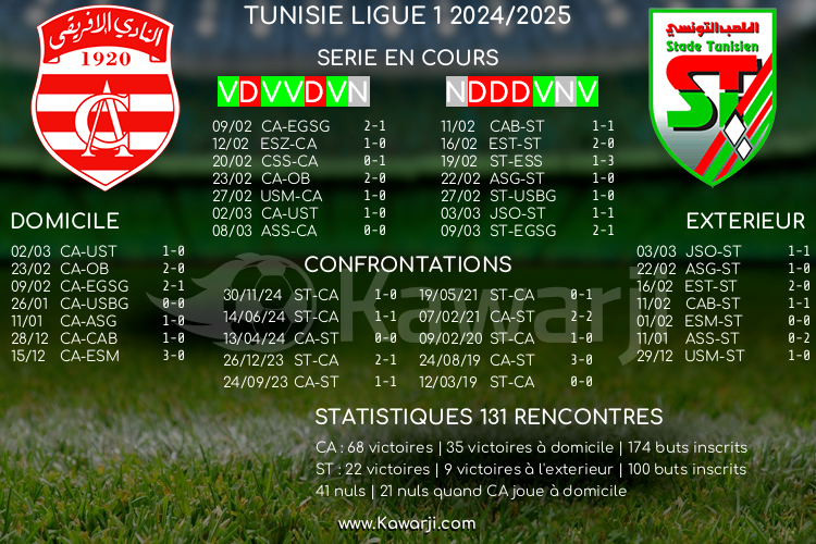 Avant les rencontres prévues ce jeudi pour le compte de la 25ème journée de Ligue 1 tunisienne 2024-2025, voici l'historique de ces confrontations :