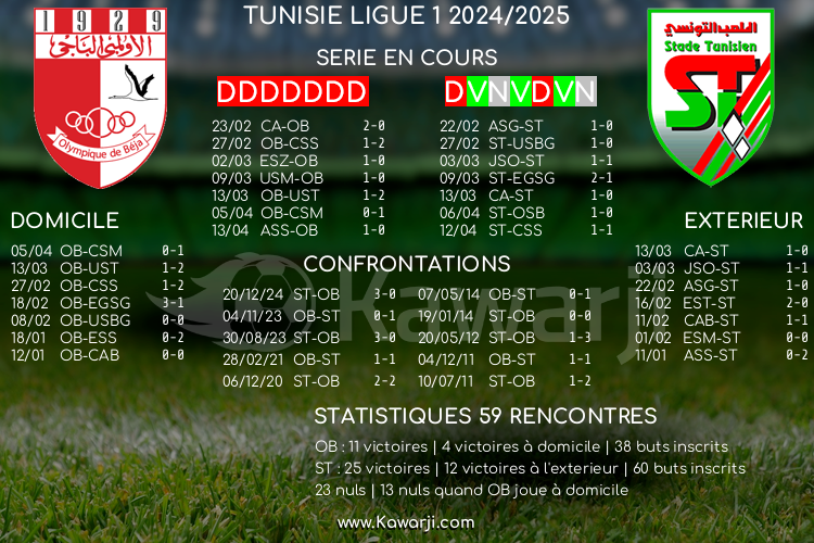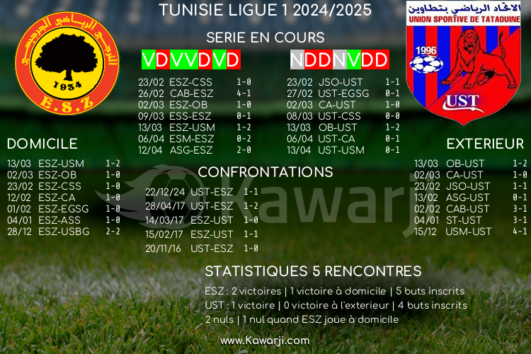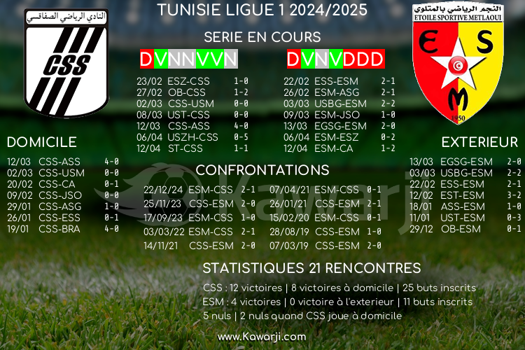 Avant les rencontres prévues ce samedi pour le compte de la 27ème journée de Ligue 1 tunisienne 2024-2025, voici l'historique de ces confrontations :