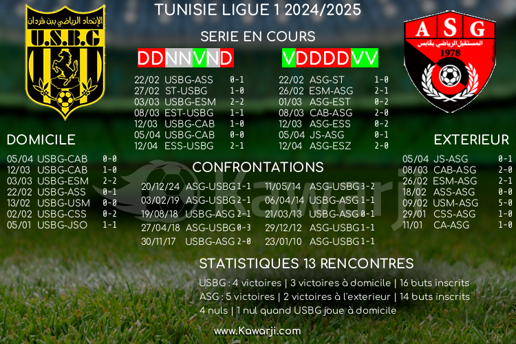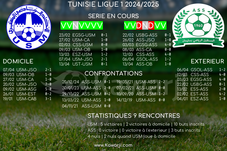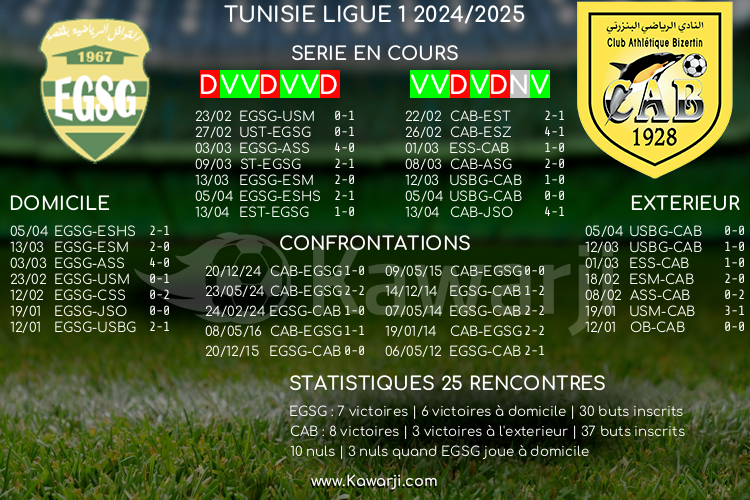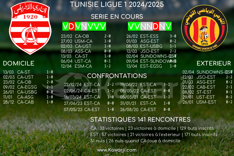 Avant les rencontres prévues ce dimanche pour le compte de la 27ème journée de Ligue 1 tunisienne 2024-2025, voici l'historique de ces confrontations :