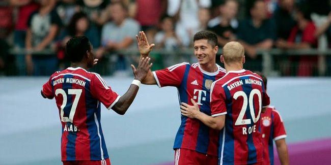 Ce samedi, les buts du Bayern Munich ont ?t? inscrits par M?ller (doubl?), G?tze (doubl?), Robben (doubl?), Lewandowski et Robben.
