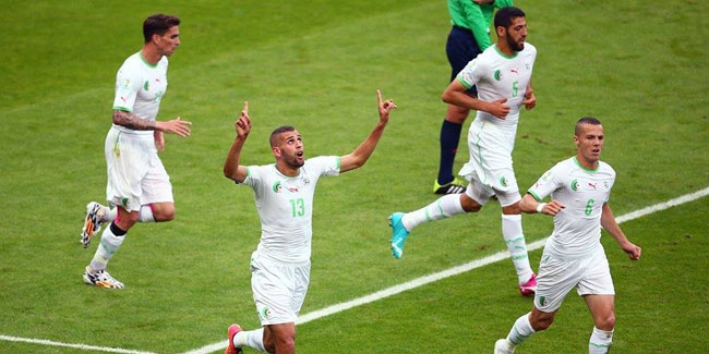 Rais M'Bolhi, Mohamed Ziti, Hichem Belkaroui, Aissa Mandi, Faouzi Ghoulam, Karl Medjani, Saphir Taider, Nabil Bentaleb, Riadh Mahrez, Yacine Brahimi et Islam Slimani.