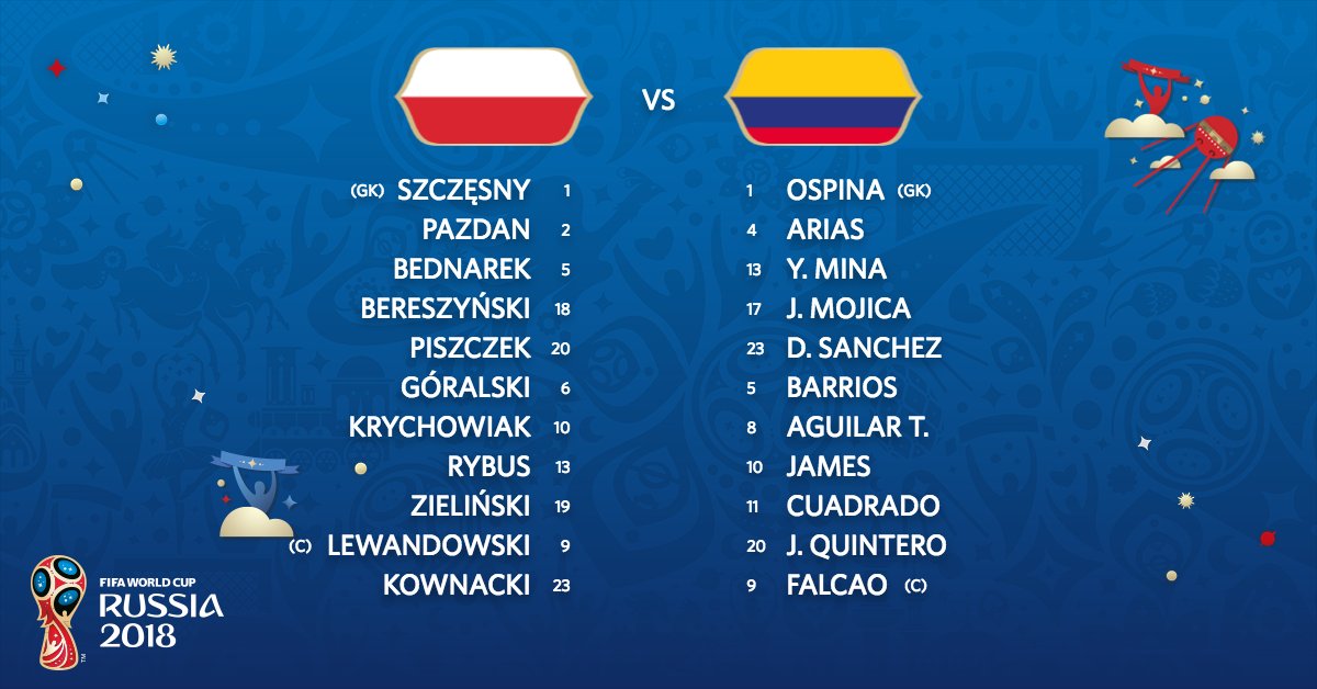Suivez avec nous sur Kawarji à partir de 19h00 l'évolution du score de la rencontre du groupe H à la Coupe du Monde 2018 qui opposera la Colombie à la Pologne :