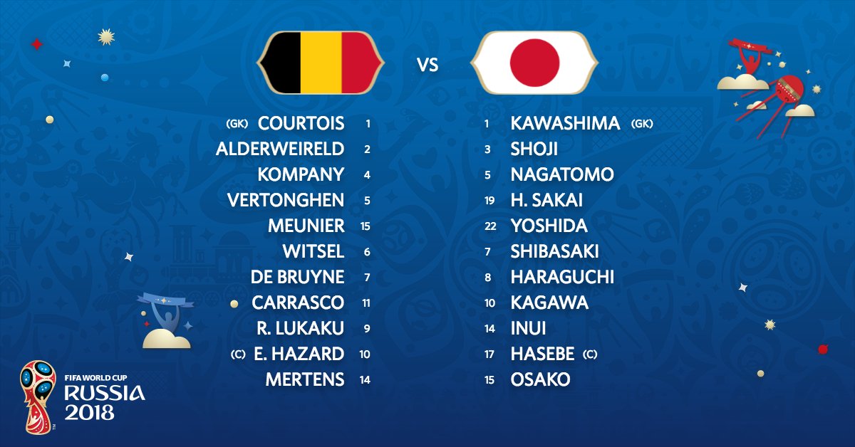 Suivez avec nous sur Kawarji à partir de 19h00 l'évolution du score du huitième de finale de la Coupe du Monde 2018 qui opposera la Belgique au Japon :
