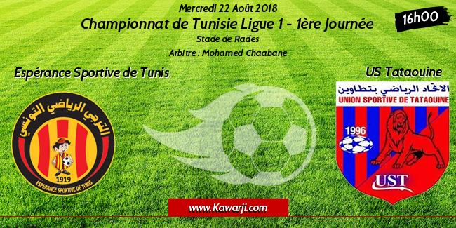 Suivez avec nous sur Kawarji à partir de 16h00 l'évolution du score de la rencontre de la première journée qui opposera l'Espérance Sportive de Tunis à l'US Tataouine :