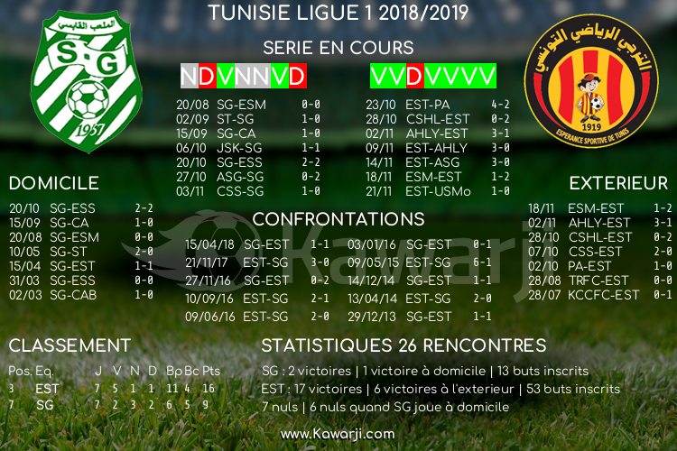 Avant les rencontres prévues ce dimanche pour le compte de la 8ème journée de la Ligue 1 tunisienne 2018-2019, voici l'historique et les statistiques relatifs à ces confrontations :