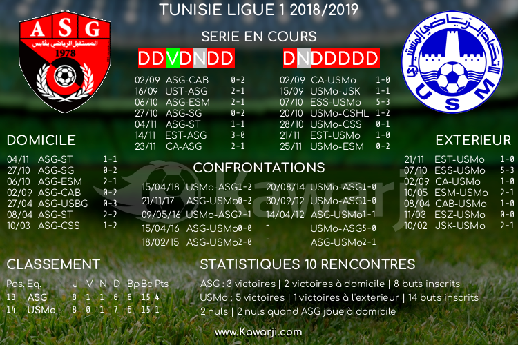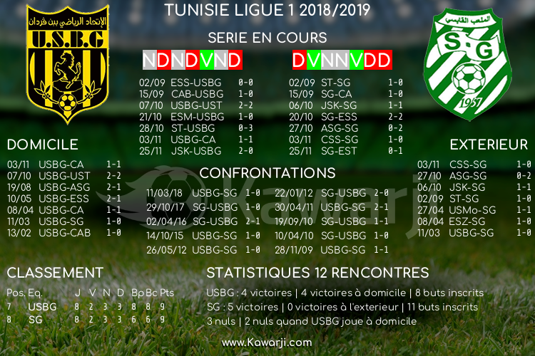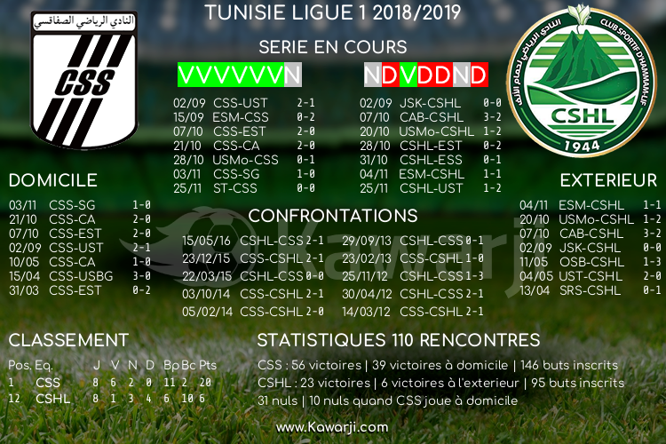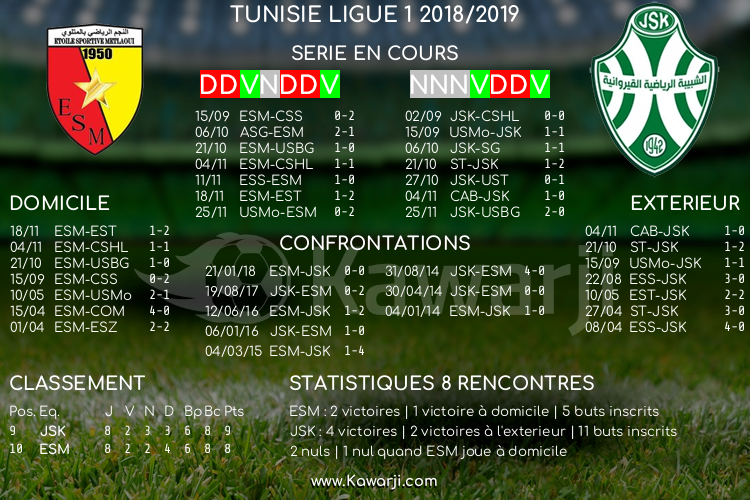 Avant les rencontres prévues ce mercredi pour le compte de la 9ème journée de la Ligue 1 tunisienne 2018-2019, voici l'historique et les statistiques relatifs à ces confrontations :
