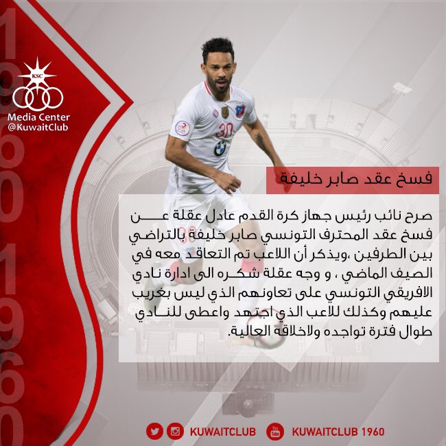 Les dirigeants de la formation koweïtienne ont tenu à remercier l'attaquant tunisien qui a terminé la première partie du championnat en tête des buteurs.
