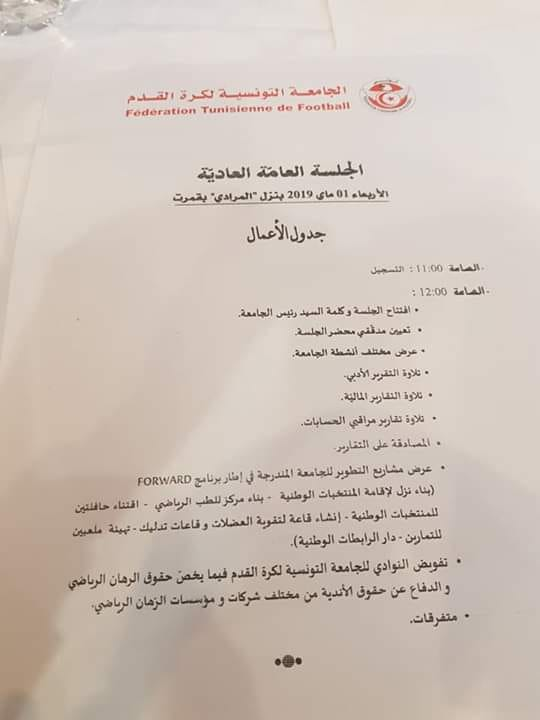 La Fédération Tunisienne de Football organisera aujourd'hui son assemblée générale ordinaire.