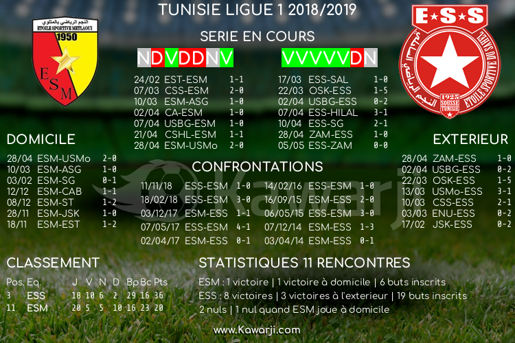 Avant le match prévu ce mercredi pour le compte de la 19ème journée de la Ligue 1 tunisienne 2018-2019, voici l'historique et les statistiques relatifs à cette confrontation :