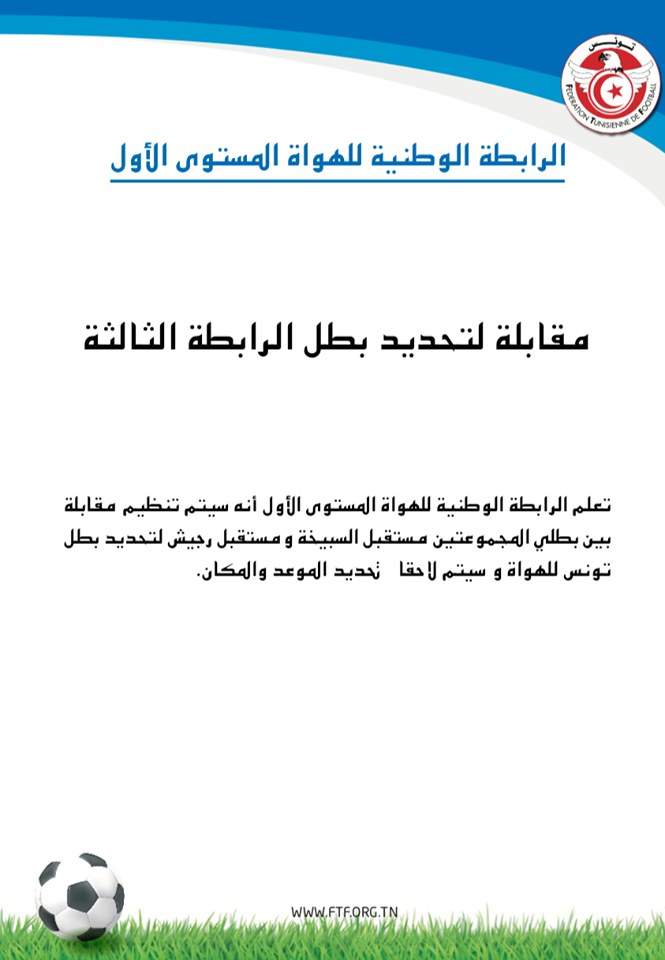 La Ligue Nationale de Football Amateur a indiqué qu'une rencontre opposera les deux premiers des groupes A et B en Ligue 3 Niveau 1.