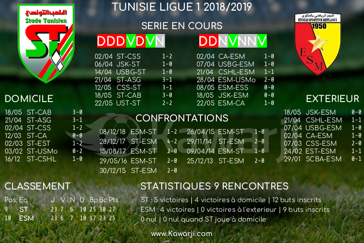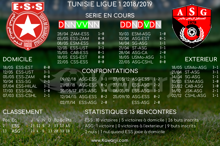 Avant les rencontres prévues ce dimanche pour le compte de la 24ème journée de la Ligue 1 tunisienne 2018-2019, voici l'historique et les statistiques relatifs à ces confrontations :