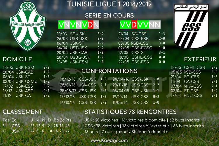 15h00 : Jeunesse Sportive Kairouanaise - Club Sportif Sfaxien