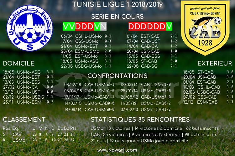 15h00 : Union Sportive Monastirienne - Club Athlétique Bizertin