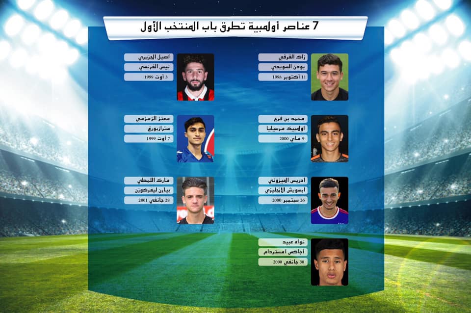Il s'agit de Moaataz Zemzemi (Strasbourg), Assil Jaziri (Nice), Mohamed Ben Fraj (Marseille), Marc Ellamti (Bayer Leverkusen), Idris Mizouni (Ipswich Town), Nouh Abid (Ajax Amsterdam).