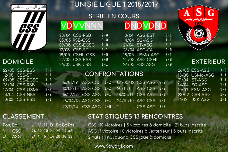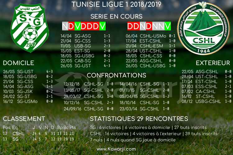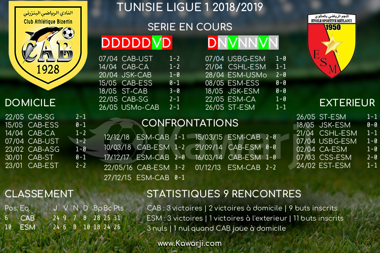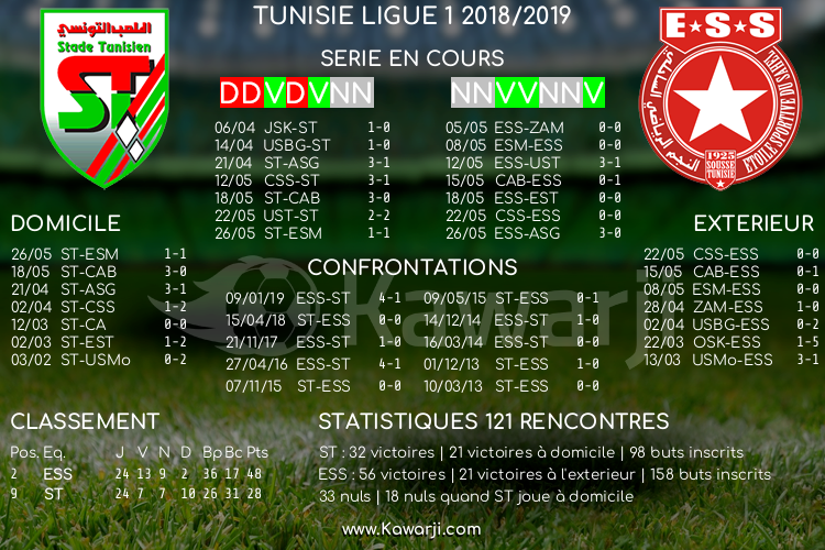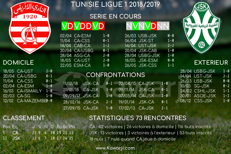 Avant les rencontres prévues ce jeudi pour le compte de la 25ème journée de la Ligue 1 tunisienne 2018-2019, voici l'historique et les statistiques relatifs à ces confrontations :