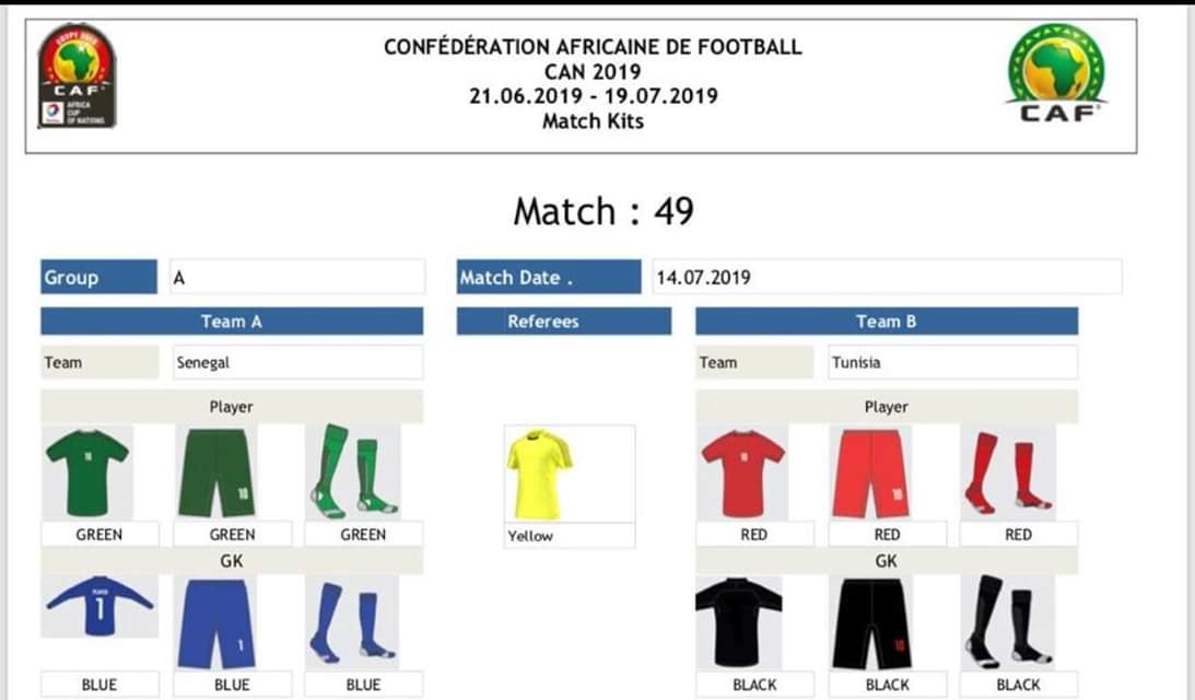 Face au Sénégal, la Tunisie évoluera pour la deuxième fois dans cette compétition avec sa tenue rouge, alors que son adversaire portera sa tenue verte.