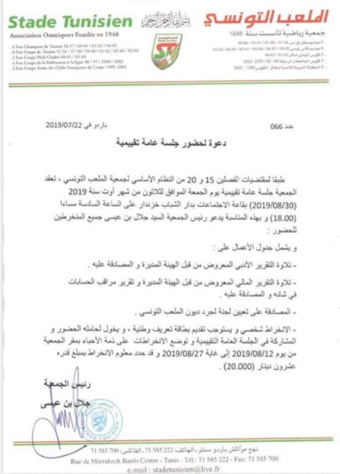 Assemblée générale évaluative du Stade Tunisien