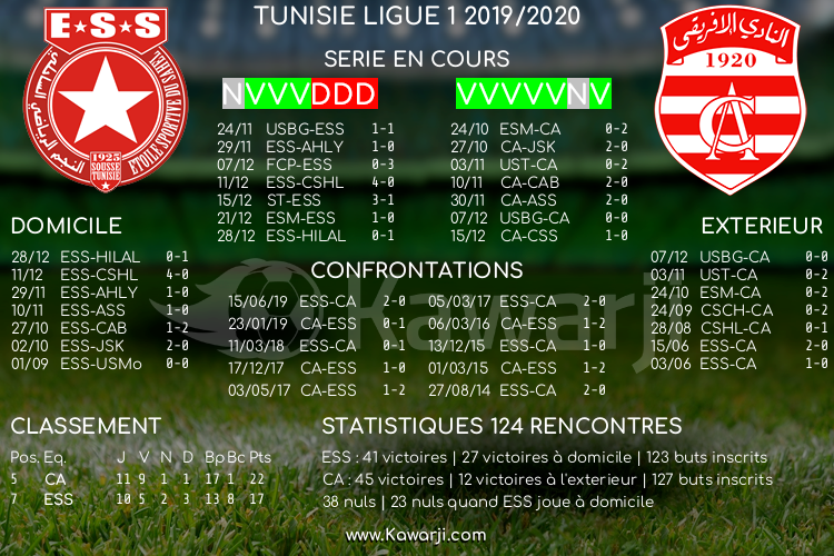 Avant le match en retard prévu ce samedi entre l'Etoile du Sahel et le Club Africain pour le compte de la 13ème journée de la Ligue 1 tunisienne 2019-2020, voici l'historique et les statistiques relatifs à cette confrontation :