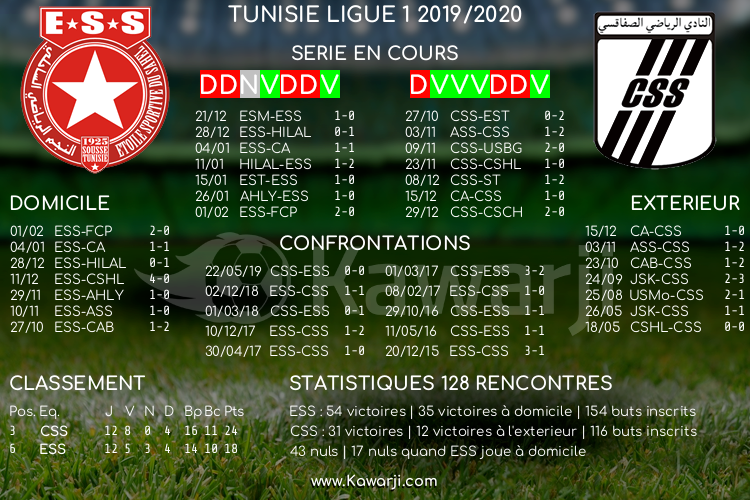Avant le match en retard prévu ce mardi entre l'Etoile du Sahel et le Club Sportif Sfaxien pour le compte de la 10ème journée de la Ligue 1 tunisienne 2019-2020, voici l'historique et les statistiques relatifs à cette confrontation :