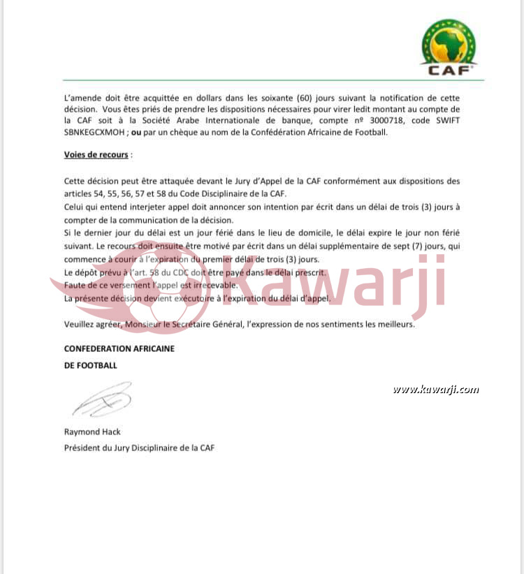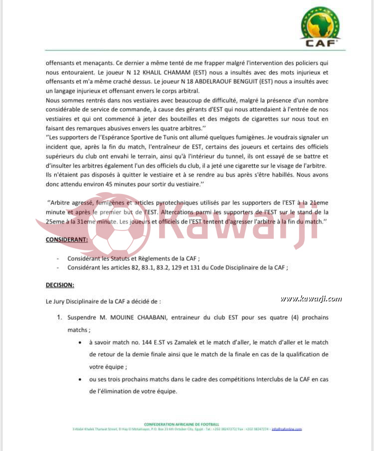 Voici la liste complète des sanctions prononcées aujourd'hui par la Confédération Africaine de Football contre l'Espérance de Tunis :