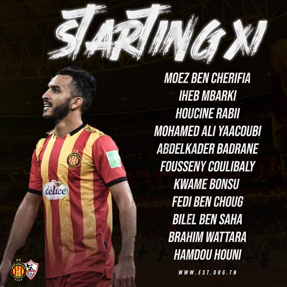 Voici la formation rentrante de l'Espérance Sportive de Tunis qui affrontera ce soir les égyptiens du Zamalek en quarts de finale retour de la Ligue des Champions africaine 2019-2020 :