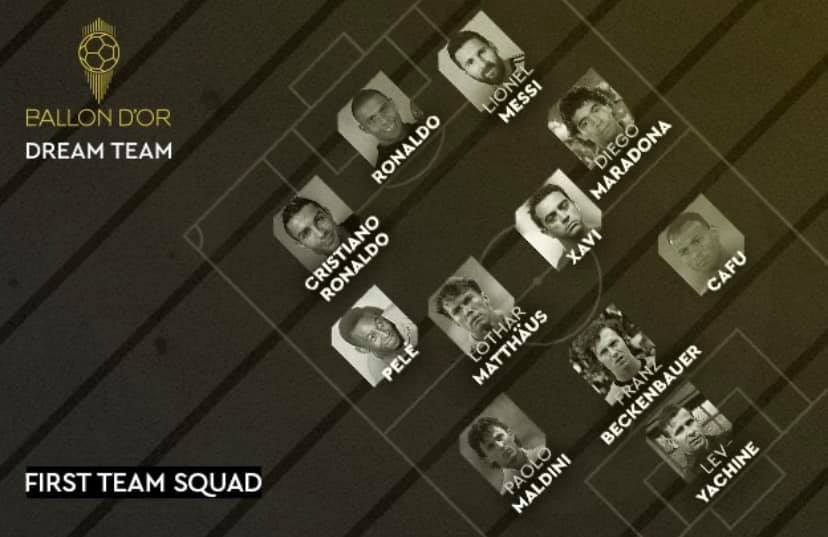 Le magazine France Football a communiqué aujourd'hui la composition du Ballon d'Or Dream Team, comprenant onze joueurs de légende élus par le jury du Ballon d'Or France Football.