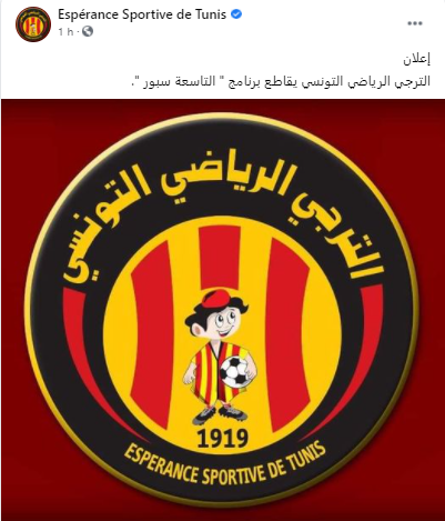L'Espérance Sportive de Tunis a annoncé aujourd'hui que l'équipe va désormais boycotter l'émission sportive Attessia Sport.