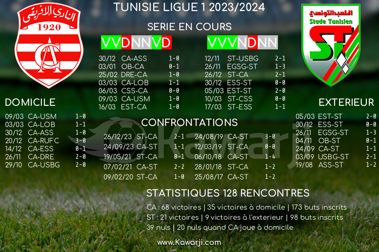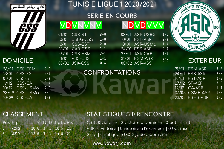 Avant les rencontres prévues ce dimanche pour le compte de la 13ème journée de la Ligue 1 tunisienne 2020-2021, voici l'historique et les statistiques relatifs à ces confrontations :