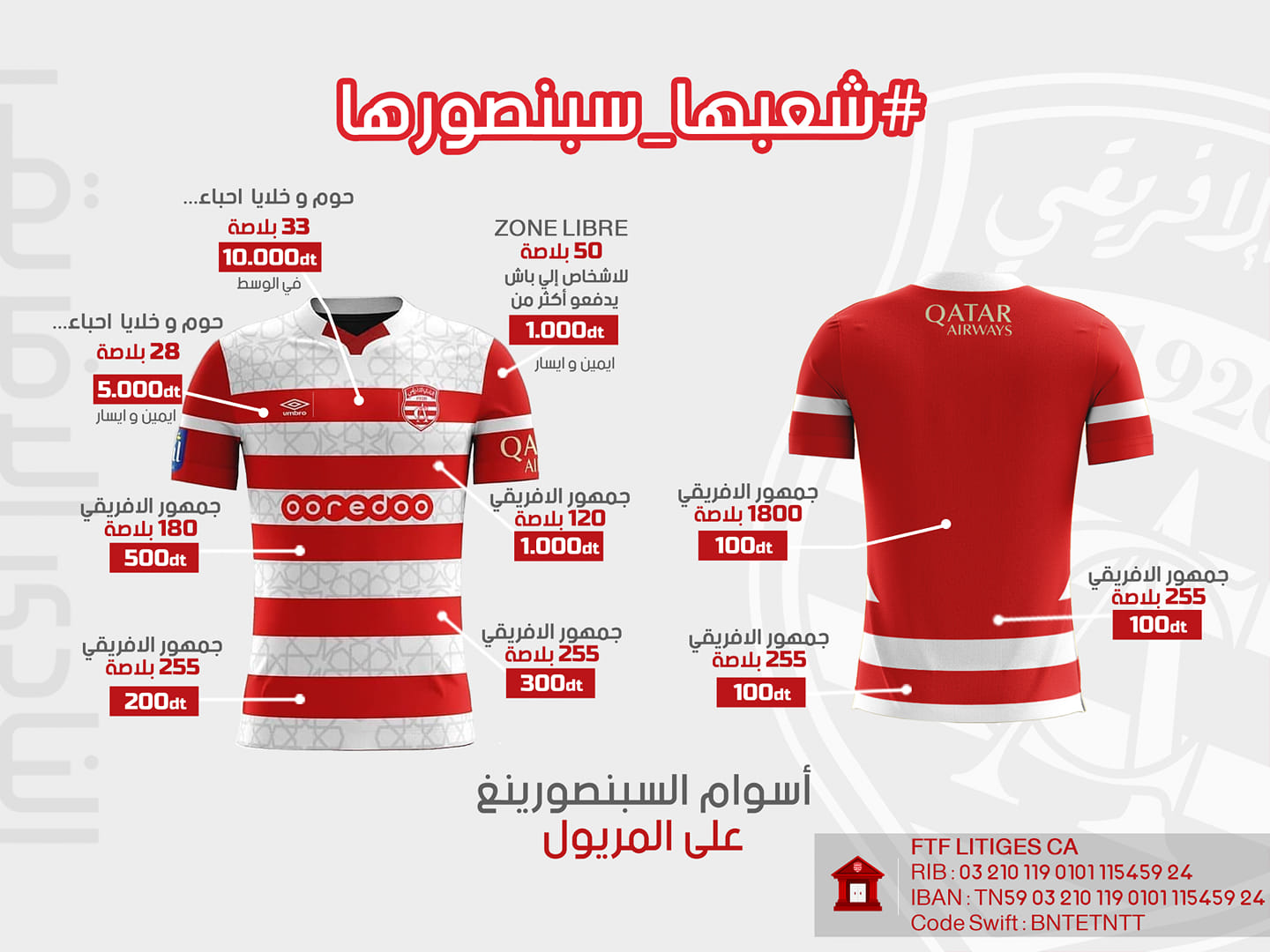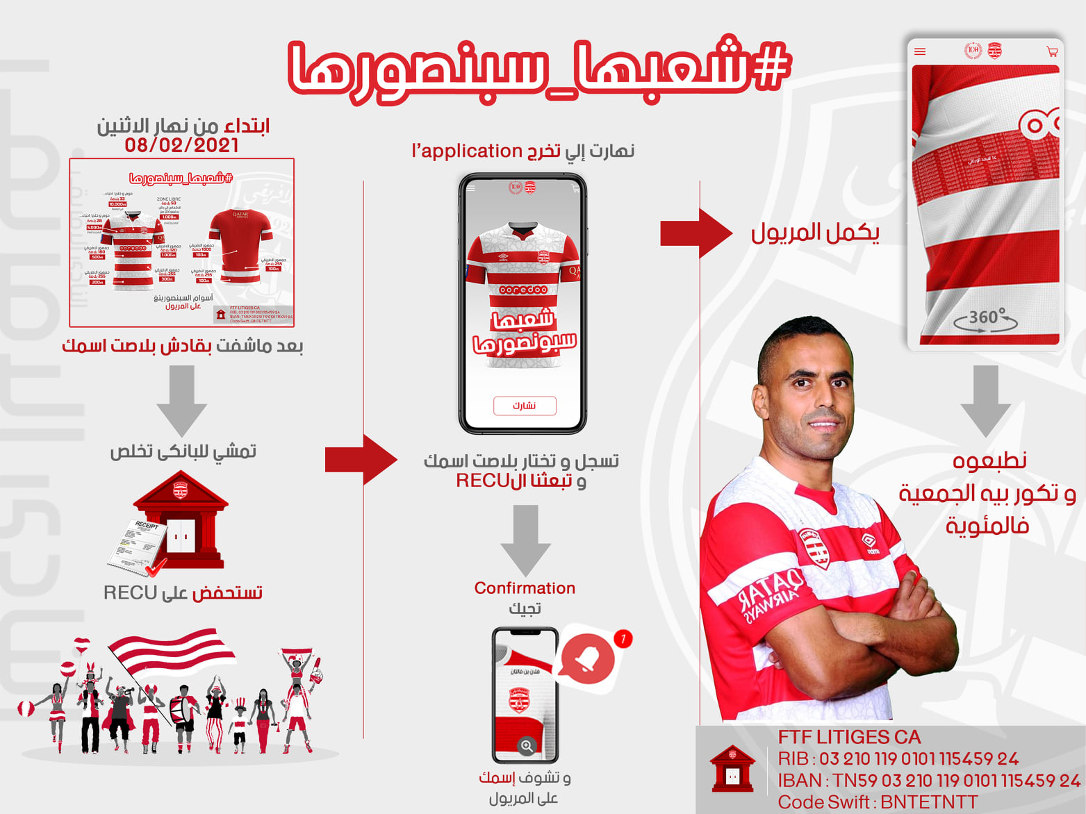 La nouveauté dans cette action consiste pour les supporters à pouvoir inscrire leurs noms sur un maillot qui sera porté par les joueurs du Club Africain à travers l'action #شعبها_سبونصورها#.