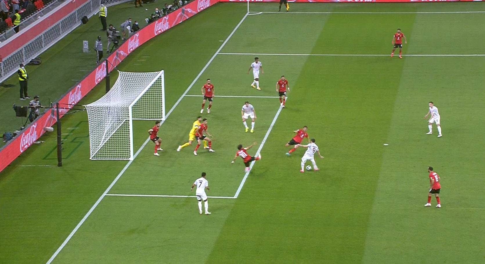 25 mn : La frappe de Roca passe de peu à côté du poteau égyptien
