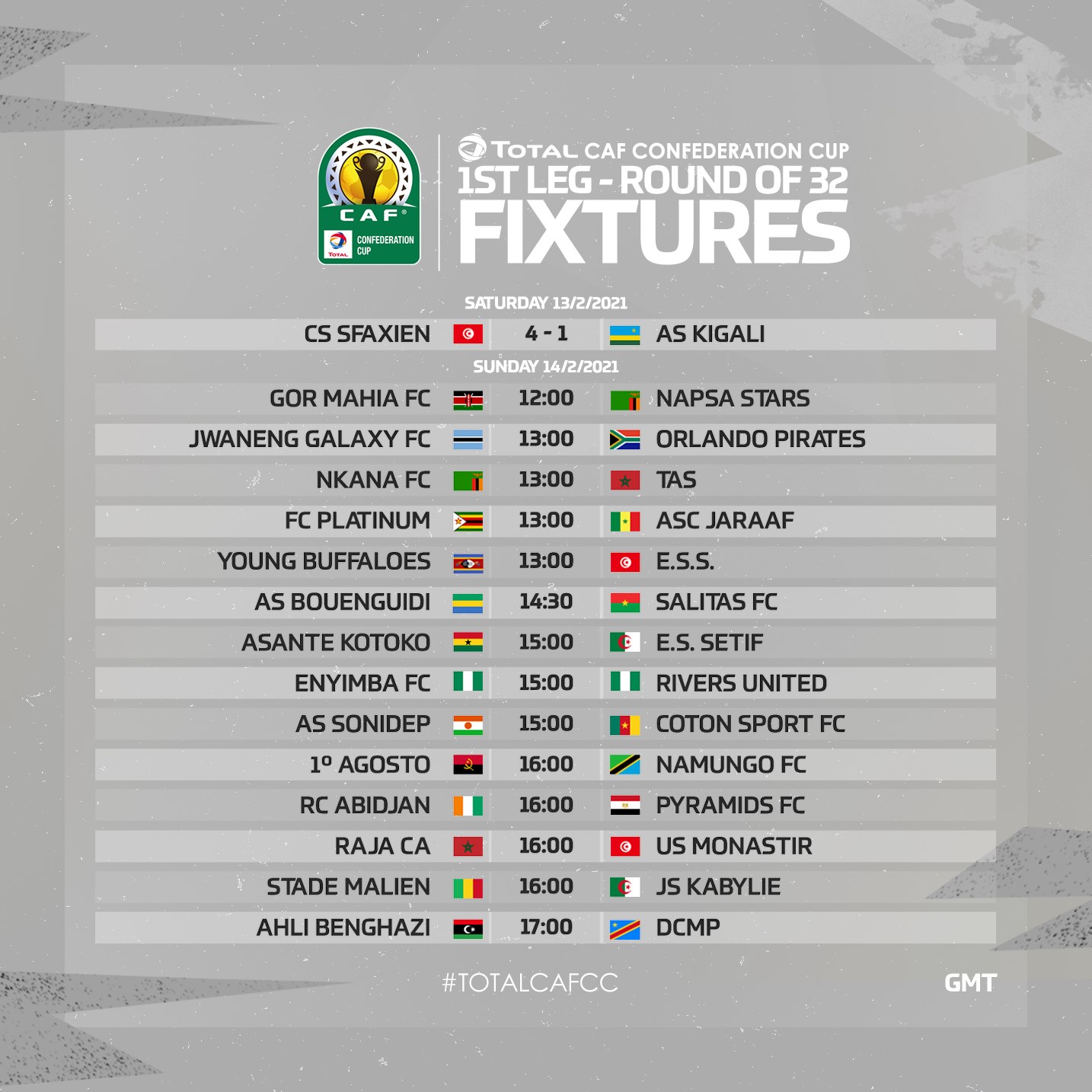 Voici le programme des rencontres aller du second tour préliminaire additionnel de la Coupe de la Confédération qui auront lieu ce dimanche :