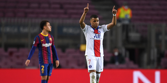 FC Barcelone 1-4 Paris-Saint Germain (FCB : Lionel Messi (SP) 28 mn / PSG : Kylian Mbappe 32, 65 et 85 mn, Moise Kean 70 mn)