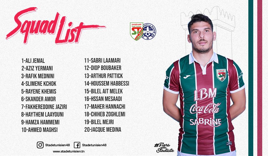 L1-J6 : Liste des joueurs du Stade Tunisien convoqués face à l'US Monastirienne