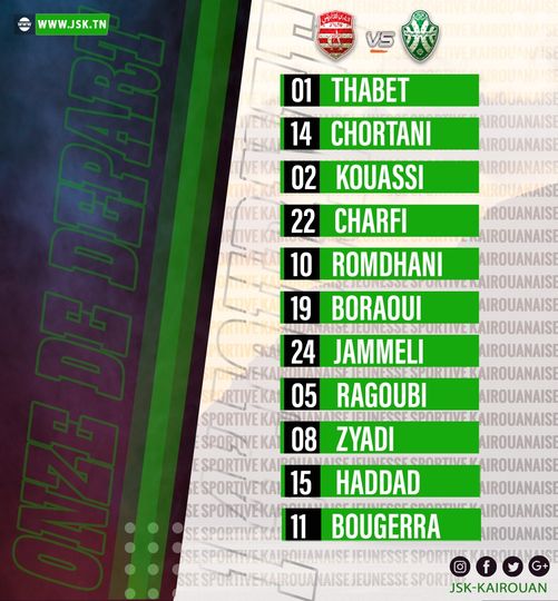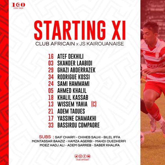 Voici les formations rentrantes du Club Africain et de la Jeunesse Sportive Kairouanaise qui seront opposés à partir de 16h00 pour le compte de la 14ème journée de la Ligue 1 2020-2021 :