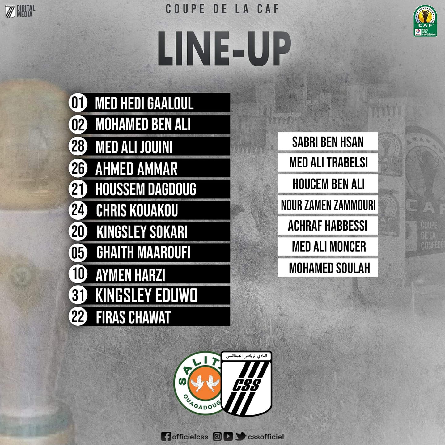 Voici la formation rentrante du Club Sportif Sfaxien qui sera opposé cet après midi à Salitas FC pour le compte de la cinquième journée de la phase des poules en Coupe de la Confédération :