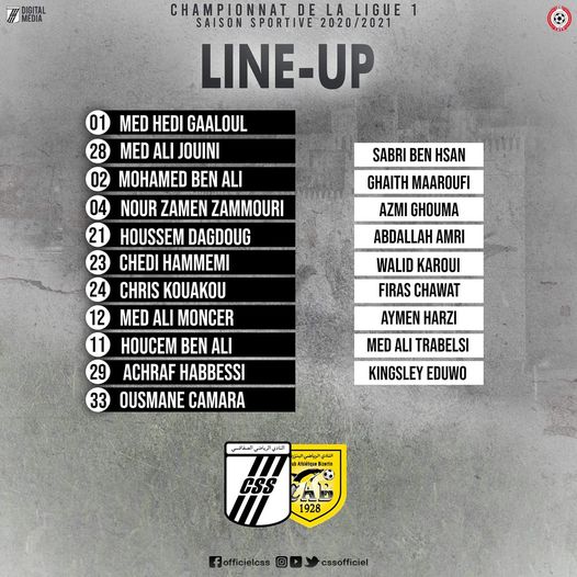 Voici la formation rentrante du Club Sportif Sfaxien qui sera opposé cet après midi à partir de 13h30 au Club Athlétique Bizertin pour le compte de la 22ème journée de la Ligue 1 tunisienne :
