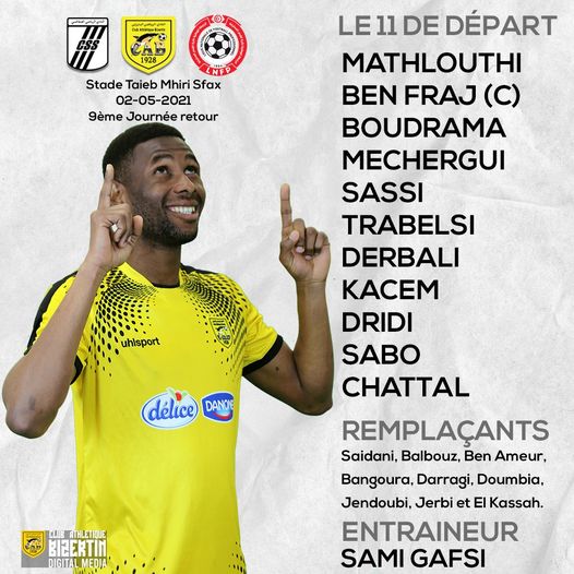 Voici la formation rentrante du Club Athlétique Bizertin qui sera opposé cet après midi à partir de 13h30 au Club Sportif Sfaxien pour le compte de la 22ème journée de la Ligue 1 tunisienne :