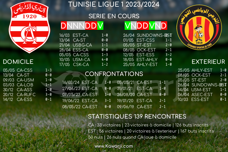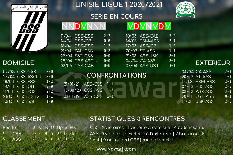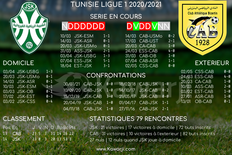 Avant les rencontres prévues ce mercredi pour le compte de la 24ème journée de la Ligue 1 tunisienne 2020-2021, voici l'historique et les statistiques relatifs à ces confrontations :