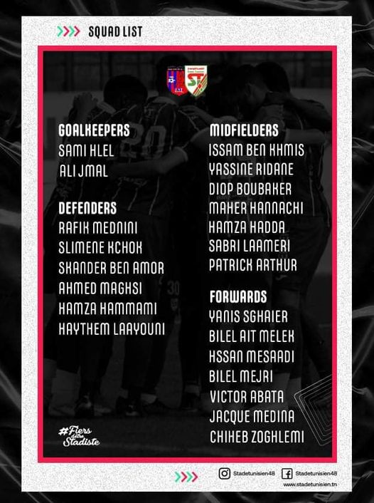 L1-J25 : Liste des joueurs du Stade Tunisien convoqués face à l'US Tataouine