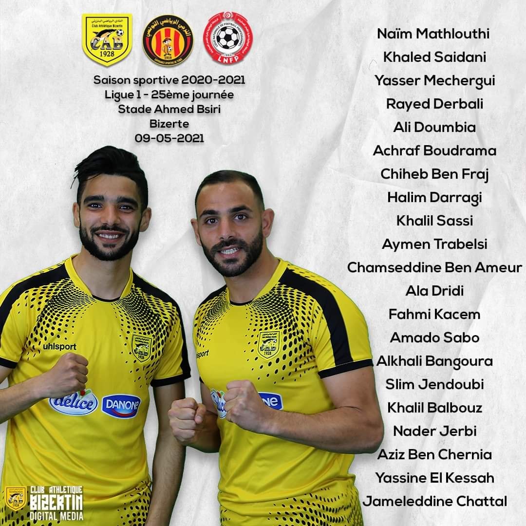 L1-J25 : Liste des joueurs du CA Bizertin convoqués face à l'Espérance de Tunis