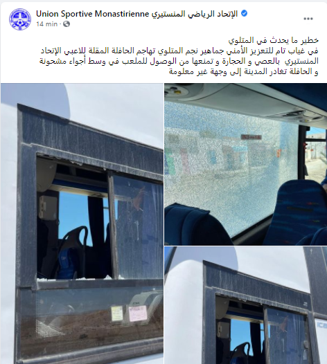 L'Union Sportive Monastirienne a indiqué aujourd'hui que le bus transportant les joueurs pour affronter l'ES Métlaoui en Ligue 1 a été attaqué par des personnes munies de bâtons et de pierres.