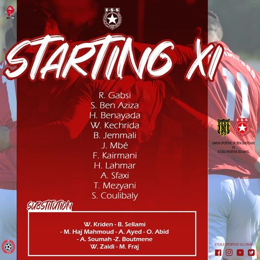Voici la formation rentrante de l'Etoile Sportive du Sahel qui affrontera cet après midi l'US Ben Guerdane pour le compte de la 25ème journée de la Ligue 1 2020-2021 :