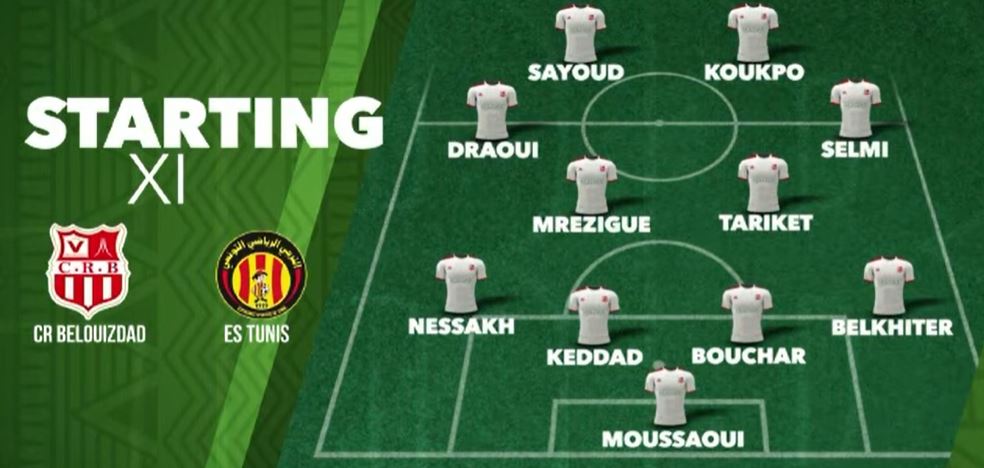 Voici la formation rentrante du Chabab Riadhi Belouizdad qui recevra cet après midi l'Espérance Sportive de Tunis pour le compte des quarts de finale aller de la Ligue des Champions :