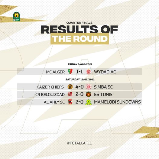 Voici les résultats complets des rencontres des quarts de finale aller de la Ligue des Champions africaine :