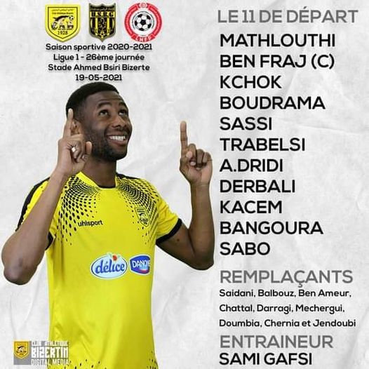 Voici la formation rentrante du Club Athlétique Bizertin qui sera opposé ce mercredi après midi à l'US Ben Guerdane pour le compte de la 26ème journée de la Ligue 1 :