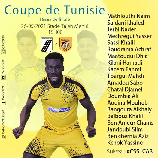 Voici la liste des joueurs du Club Athlétique Bizertin convoqués en vue de la rencontre des 16èmes de finale de la Coupe de Tunisie qui l'opposera demain au Club Sportif Sfaxien :