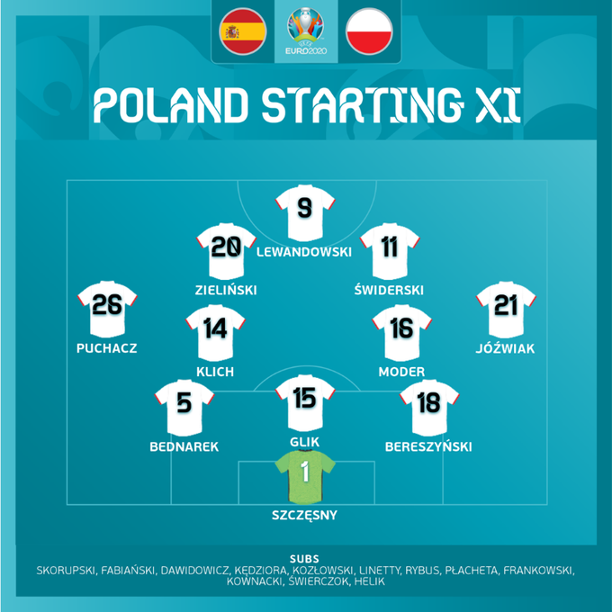 Score final : Espagne 1-1 Pologne (ESP : Alvaro Morata 26 mn / POL : Robert Lewandowski 54 mn)
