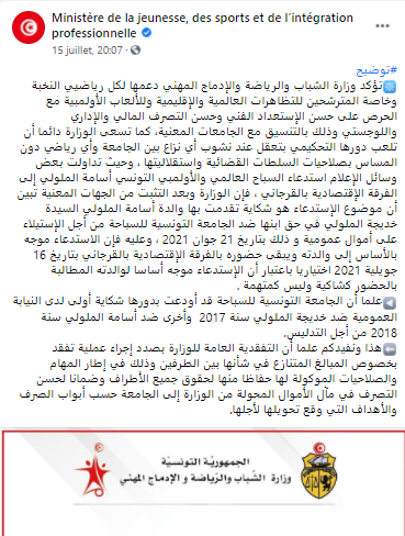 La semaine dernière, le nageur tunisien a été convoqué avec sa mère dans le cadre de cette affaire financière.