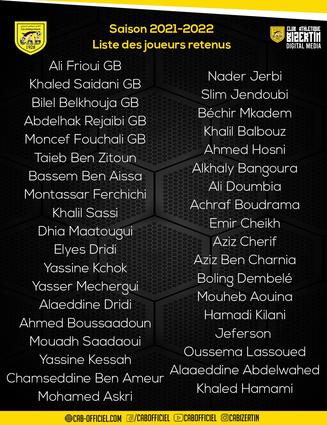 Le Club Athlétique Bizertin a publié la liste qui sera présente pour disputer la saison 2021-2022.