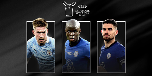 Deux joueurs de Chelsea, N'Golo Kanté et Jorginho, et un de Manchester City, Kevin de Bruyne, se disputeront le titre cette année.